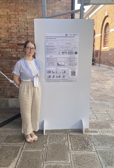 At EuroS&P 2025 in Venice, held from June 30 to July 4, Magdalena Steinböck presented the paper “SoK: Hardening Techniques in the Mobile Ecosystem – Are We There Yet?”, co-authored with Martina Lindorfer and researchers from Vrije Universiteit Amsterdam and the University of Twente. The work investigates the real-world adoption of mobile app hardening techniques — such as tamper prevention, jailbreak detection, and data leakage protection — recommended by the Mobile Application Security Verification Standard (MASVS).