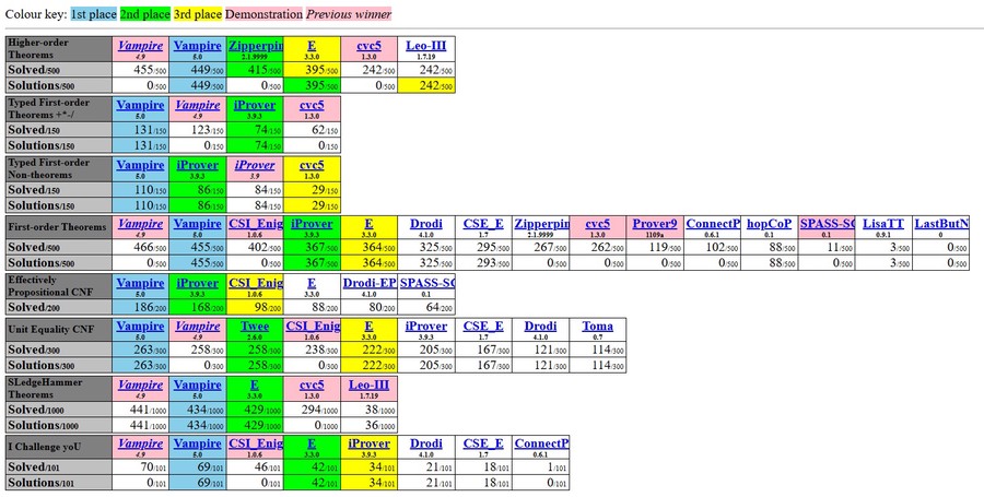 The Vampire theorem prover has made history at the annual CASC-30 by winning all eight theorem‑proving divisions. This marks the first time in CASC history that a single prover has achieved a complete sweep. Even more impressively, Vampire solved more problems than all other competing systems combined.